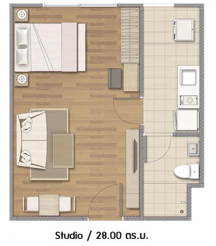 พื้นที่ 28 ตรม. 1 ห้องนอน 1 ห้องน้ำ
