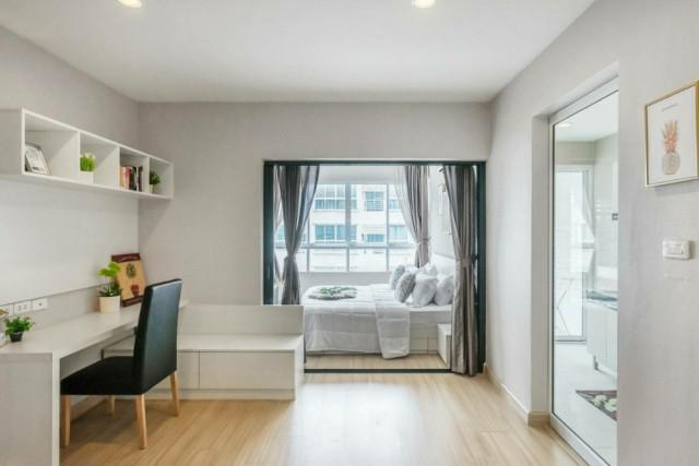 1 ห้องนอน 1 ห้องน้ำ มีเคาน์เตอร์ครัว ระเบียง