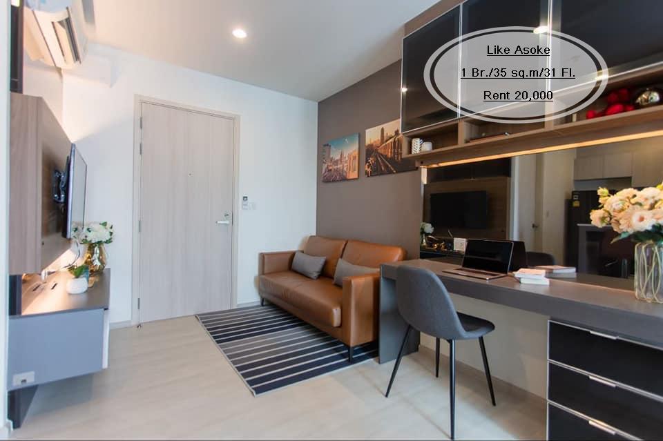 เช่า- Like Asoke /1 ห้องนอน/ 35 ตร.ม. /ชั้น 31 ใกล้ MRT เพชรบุรี เช่า 20,000