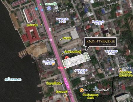 ไนท์บริดจ์ สกาย ริเวอร์ โอเชี่ยน ชั้น 25 ขนาด 26.43 ตร.ม. ระเบียงหันไปทางทิศเหนือ วิวเมือง แม่น้ำเจ้าพระยา ตั้งอยู่บนถนนสุขุมวิทซึ่งเป็นถนนเส้นยาวที่วิ่งเข้าตัวเมืองสมุทรปราการ และตรงไปยังกรุงเทพได้สะดวก ไม่ไกลจากถนนศรีนครินทร์, ถนนแพรกษา และถนนสายลวด อยู่ไม่ไกลจากสถานศึกษา, สถานที่ราชการ ร้านค้า ร้านอาหารและตลาดสด
