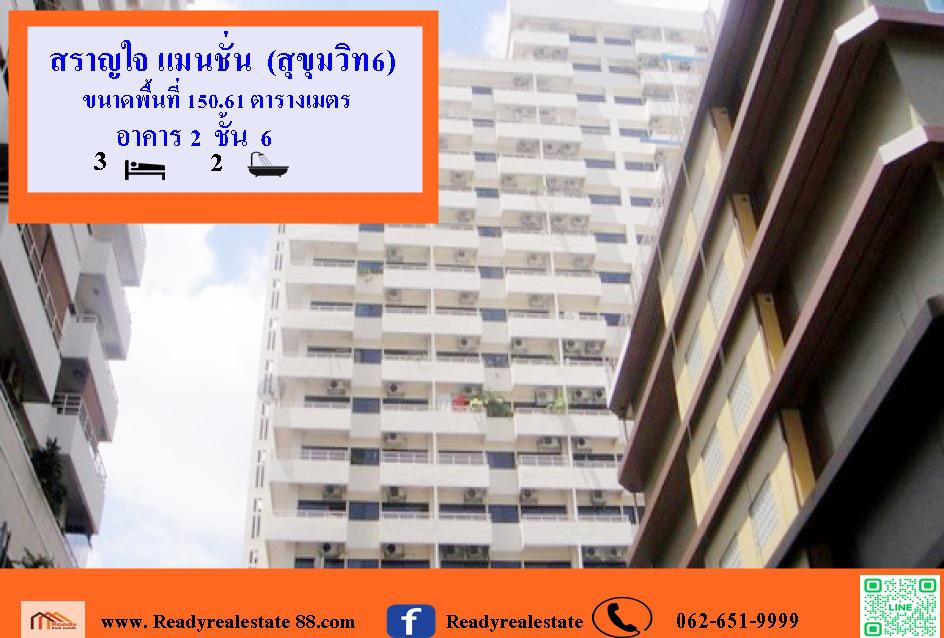 ขายคอนโด สราญใจ แมนชั่น (สุขุมวิท6) เนื้อที่ 150.61 ตรม. พร้อมอยู่ เหมาะลงทุนปล่อยเช่า
