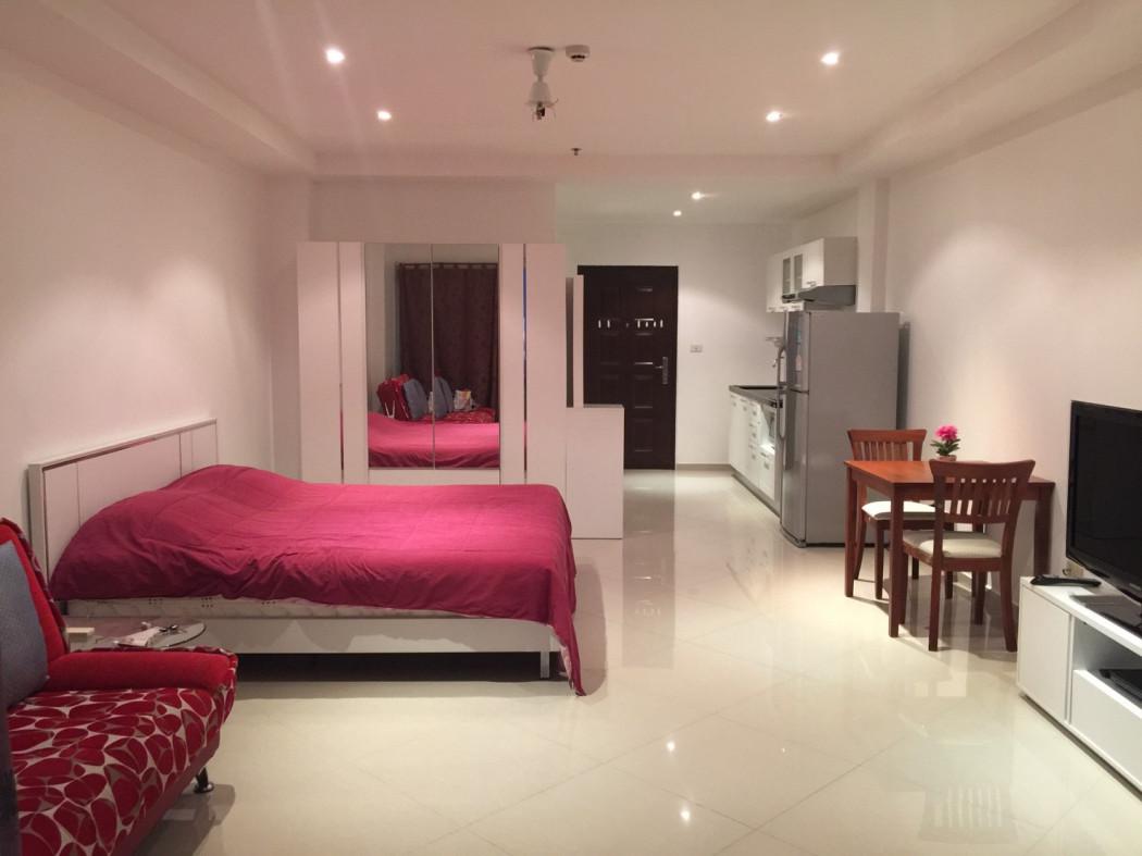 The interior design of the room comprises a bedroom, a bathroom along with furnitures such as sofa set, wardrobe, shelves, dining table and the sight of the sea. The panorama of this room can see the sea area around walking street. The condo also provides big swimming pool and many elevators. The front area of the walking street beach can be accessible easily. In order to go to sea, you just only walk pass the condo’s swimming pool and enjoying swimming in the sea once you finished swimming, you can just walk across condo’s swimming pool to take a shower conveniently.