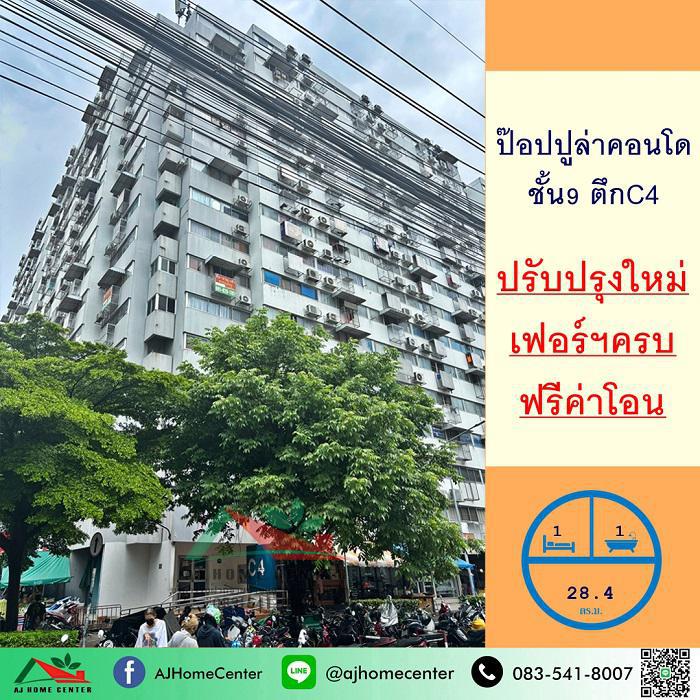 ขายถูก5.5แสน ป๊อปปูล่าคอนโดมิเนียม28.4ตรม. ชั้น9 ตึกC4 ปรับปรุงใหม่ เฟอร์ครบ ฟรีโอน