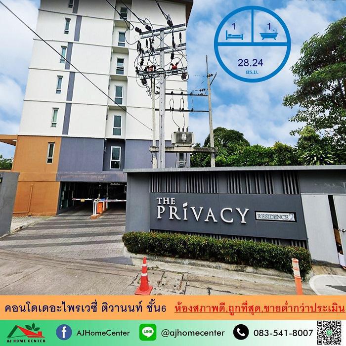 ขายถูกสุด 9.99 แสน คอนโดเดอะไพรเวซี่ ติวานนท์ 28.24ตรม. ชั้น6 ตึกA สภาพดี พร้อมอยู่ จัดกู้ฟรี