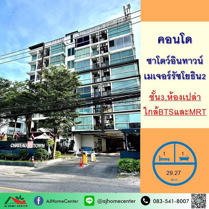 ขายคอนโดชาโตว์อินทาวน์ เมเจอร์รัชโยธิน เฟส2 ชั้น3 ขนาด29.27ตรม. ใกล้ทั้งBTSและMRT
