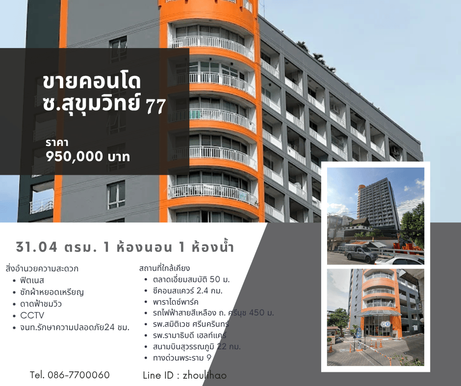 #ขายคอนโด ซ.สุขุมวิท77 ใกล้รถไฟฟ้า ถ.ศรีนุช