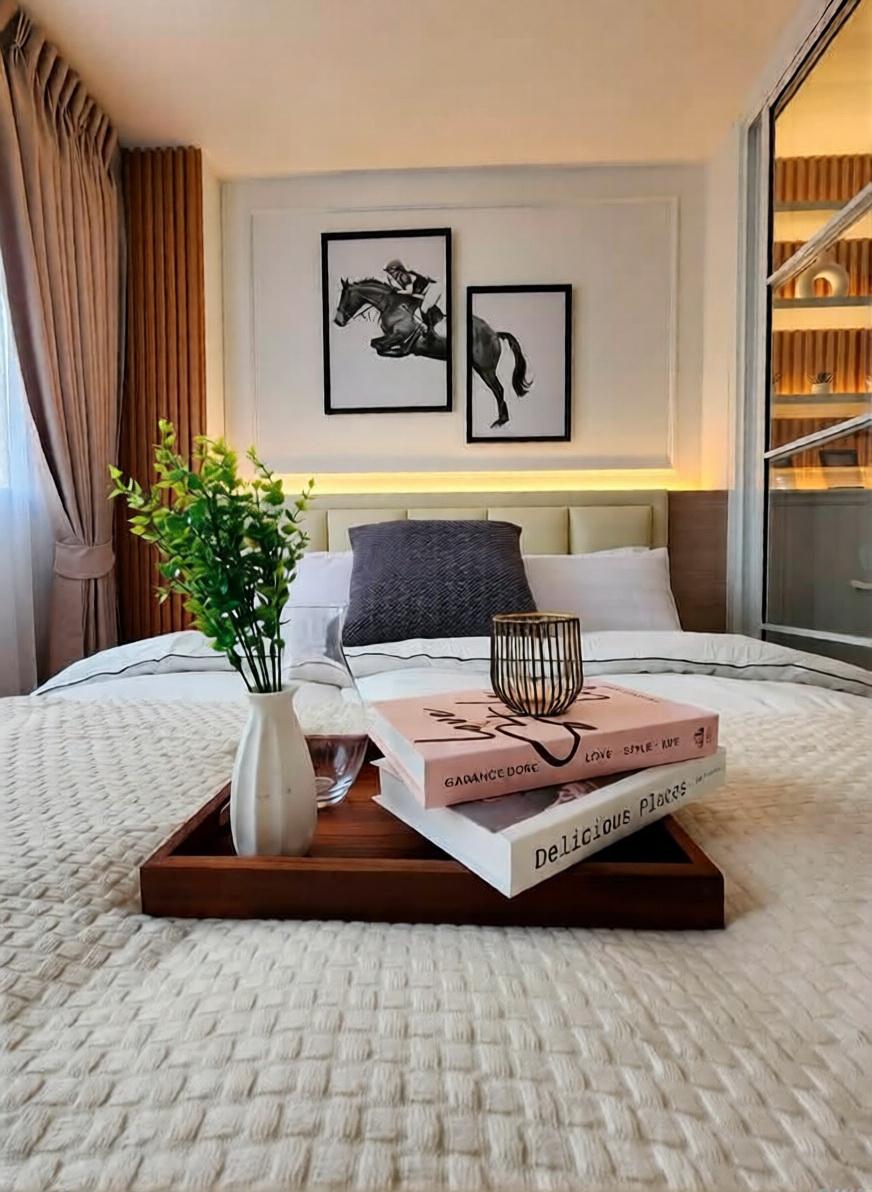 คอนโด 1 ห้องนอน แยกสัดส่วนชัด ตกแต่งใหม่สวย โทนอบอุ่น สะอาด ดูแลอย่างดี ห้องริมสุดเงียบสงบพร้อมอยู่