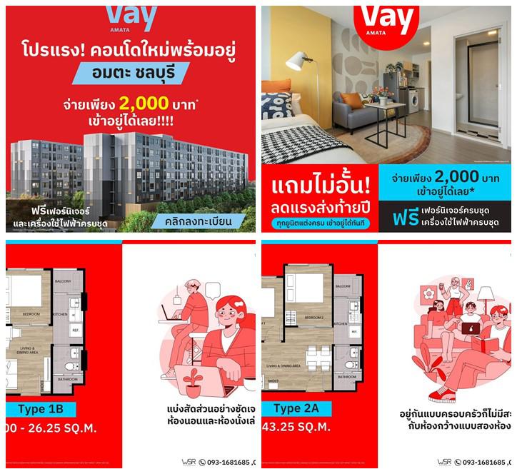 Vay Amata คอนโดใหม่ บรรยากาศดี เครื่องใช้ไฟฟ้าครบ พร้อมเข้าอยู่ ใจกลางอมตะนคร โทร 093-1681685