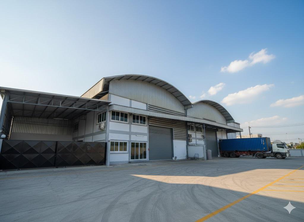 ขาย / ให้เช่า โกดัง–โรงงาน 1,090 ตร.ม. คลองมะเดื่อ กระทุ่มแบน สมุทรสาคร ไฟฟ้า 3 เฟส | หันหน้าทิศใต้ | ขอ อย. ได้ | ขอ ร