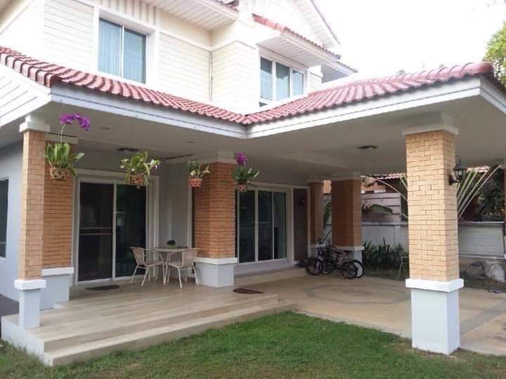 แบบบ้านสวย พร้อมเข้าอยู่ได้เลย ต่อเติมโรงรถใหญ่มาก จอดรถได้ถึง 6คัน ภายในบ้าน ต่อเติมเพิ่ม ให้ใหญ่ขึ้น และยังมี ระเบียงนั่งเล่นด้านข้างขนาดใหญ่ มีสวน ทั้งยังต่อเติมห้องนั่งเล่น หรือห้องอเนกประสงค์ ซึ่งด้านหลัง ก็ยังใช้เป็นประโยชน์ได้โดยทำเป็นที่นั่งแบบโปร่งๆ หรือต่อเติมพื้นที่ใช้สอยเพิ่มขนาดได้อีกกว้างขวาง บ้านหลังนี้ ใช้พื้นที่ได้คุ้มค่าจริงๆ เจ้าของใหม่เข้ามาอยู่ได้เลยไม่ต้องทำอะไรแล้ว ทำเลดีมาก วิวสวย บรรยากาศปลอดโปร่งบริสุทธิ์ ติดถนนเมน 12 ม. ของโครงการ