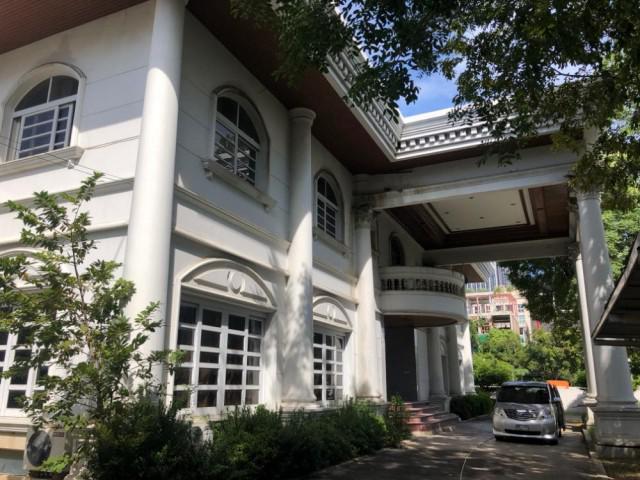 โรงจอดรถ ,สนามหญ้า พร้อมด้วยห้องชั้นใต้ดิน และอาคารบ้านพักแม่บ้านแยกต่างหากจากตัวบ้าน