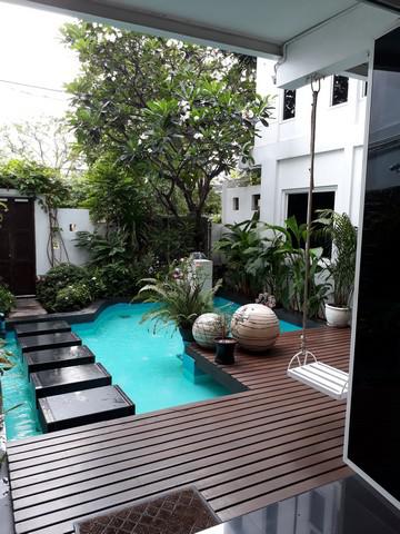 สิ่งแวดล้อมสวย รายรอบด้วยพื้นที่สีเขียวของสวนรอบด้าน ที่จอดรถส่วนตัวได้ 4 คัน และด้านหน้าอีก 4 คัน