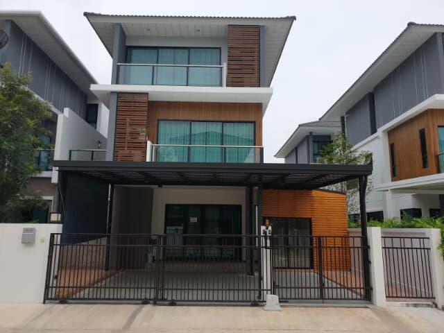 พื้นที่ใช้สอย 243 ตร.ม. 4 ห้องนอน 4 ห้องน้ำ 1 ห้องเอนกประสงค์ 3 ที่จอดรถ ต่อเติมเต็มพื้นที่ มีครัวไทย ชานบ้าน หลังคาโรงรถ ประตูรีโมท ราคา 9.6ล้านบาท