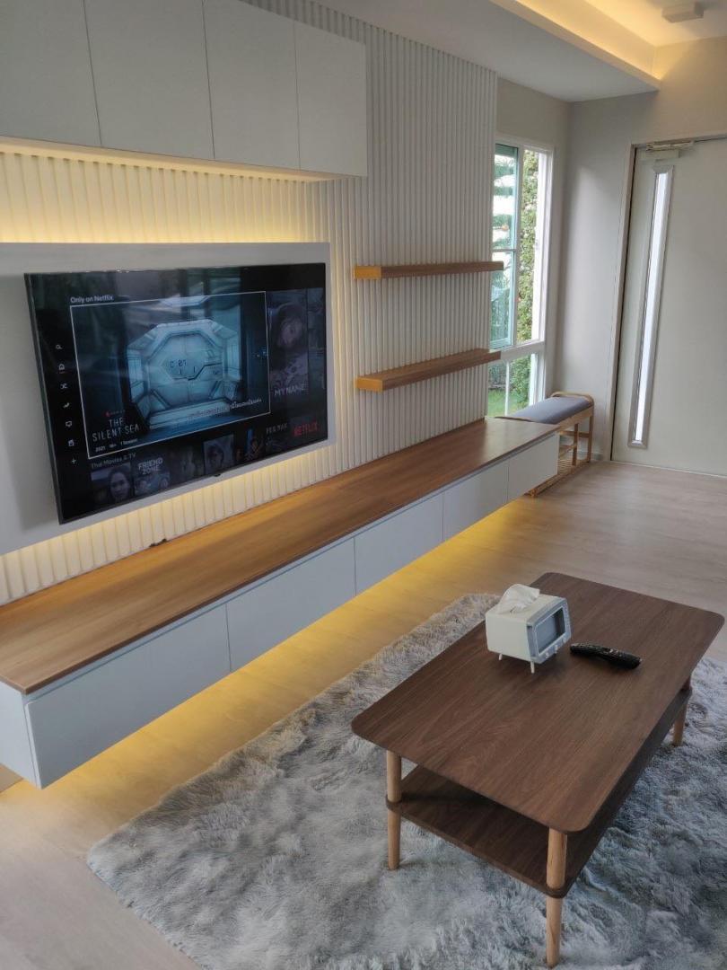 พร้อมเฟอร์นิเจอร์ บิวอินห้องนั่ง แอร์และครัว สมาร์ททีวี 55 นิ้ว โซฟาขนาดใหญ่