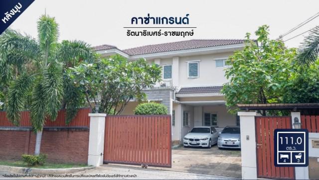 บ้านเดี่ยวมือสองย่านนนทบุรีฯ ม.คาซ่าแกรนด์ รัตนาธิเบศร์-ราชพฤกษ์ เนื้อที่กว้างขวางมากถึง 111 ตร.ว. ฟังก์ชัน 4 ห้องนอน 5 ห้องน้ำ ที่จอดรถ 5 คัน แถมฟรี! เครื่องปรับอากาศ 7 เครื่อง บนทำเลแห่งการเดินทาง ใกล้รถไฟฟ้าสายสีม่วง "สถานีบางรักใหญ่"