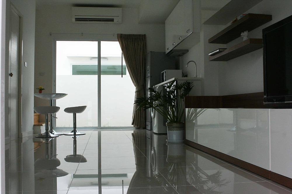 ภายในตกแต่งสไตล์ modern พร้อมเฟอร์นิเจอร์บิ้วอินครบชุด ในห้องนั่งเล่น ห้องนอน และ ห้องครัว
