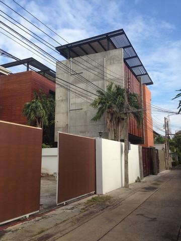 ขายบ้านเดี่ยว modern 3 ชั้น พื้นที่ 67 ตรว 4 ห้องนอน 5 ห้องน้ำ จอดรถ ได้ 3 คัน แอร์ 7 เครื่อง อายุบ้าน 6 ปี 2559 มีสวนขนาดย่อมๆ พื้นที่ใช้สอยรวม indoor area. 450 ถนนหน้าแปลงกว้าง 5.30 เมตร บ้านหันไปทางทิศตะวันออก บ้าน ออกแบบ โดยสถาปนิก มหาลัย มธ จุดเด่น สงบ เหมาะ พักอาศัย ไม่วุ่นวาย