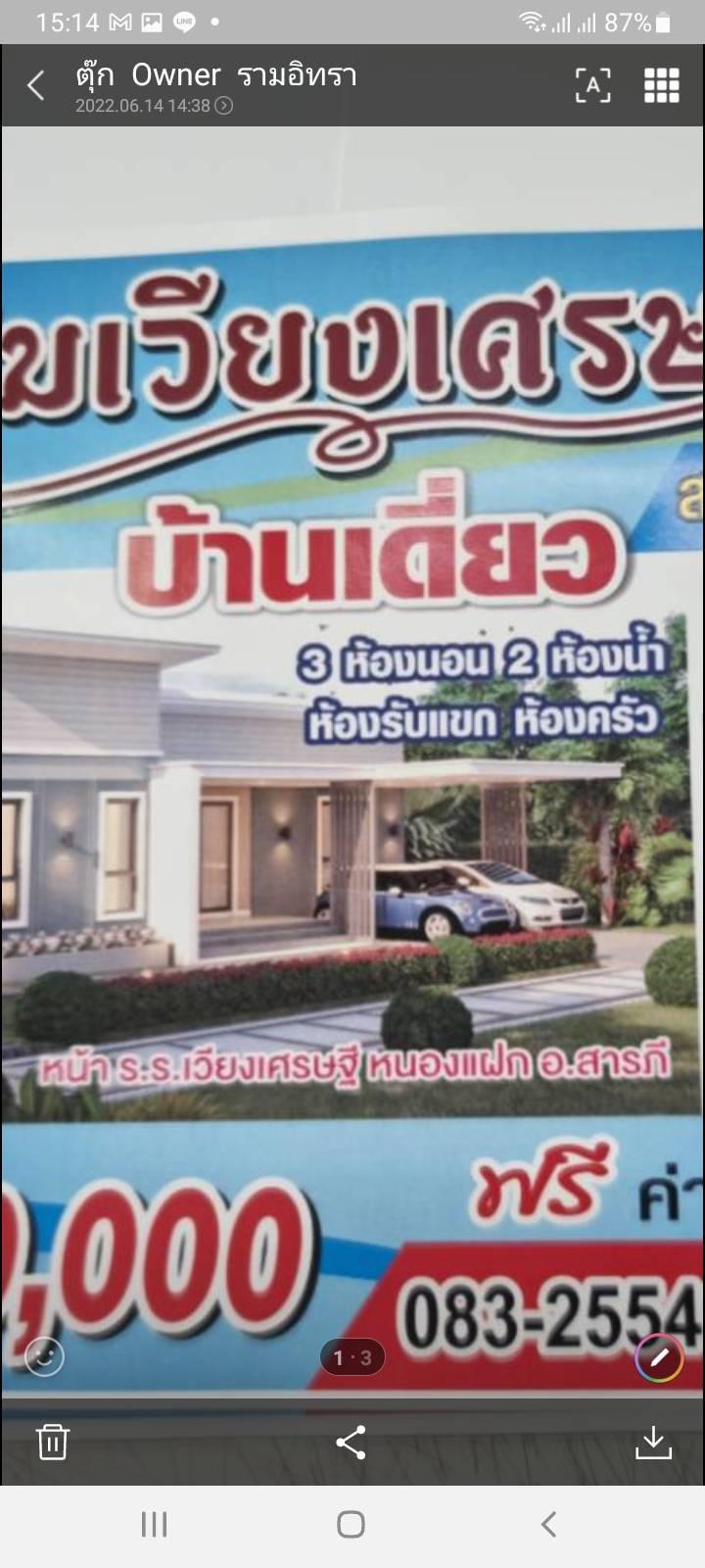 ประกาศที่ท่านเห็นอยู่นี้เป็นประกาศที่ผู้ต้องการซื้อขาย (อาจเป็นเจ้าของหรือนายหน้า) ได้นำเนื้อหาและรูปภาพมาลงไว้ด้วยตนเอง กรุณาตรวจสอบข้อมูลผู้ซื้อขาย และตรวจสอบอสังหาริมทรัพย์ก่อนทำการซื้อขายจริง ข้อมูล/รูปภาพผู้ประกาศจะรับผิดชอบทั้งหมด