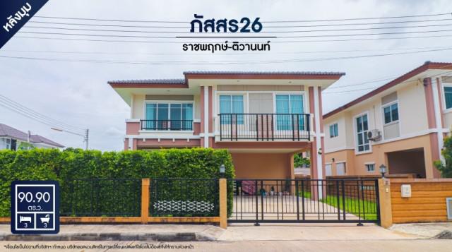 ขาย - บ้านเดี่ยวมือสอง ม.ภัสสร26 ราชพฤกษ์-ติวานนท์ หลังมุม เนื้อที่กว้างขวางกว่า 90.90 ตร.ว. ฟังก์ชัน 3 ห้องนอน 3 ห้องน้ำ จอดรถได้ 2 คัน สภาพใหม่เหมือนมือหนึ่ง พร้อมเข้าอยู่ ทำเลเดินทางสะดวก หน้าโครงการติดถนนถนนราชพฤกษ์ ใกล้ทางด่วน "ศรีสมาน"