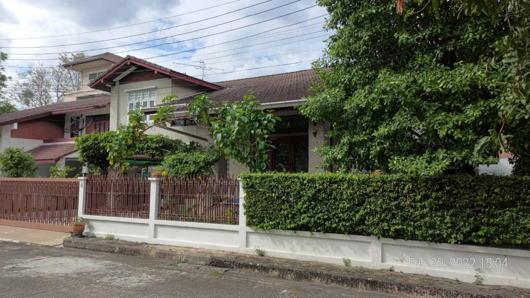 จอดรถได้4คันมีสนามหญ้าด้านข้าง พร้อมต้นไม้ใหญ่ ร่มรื่นหมู่บ้านติดถนนใหญ่