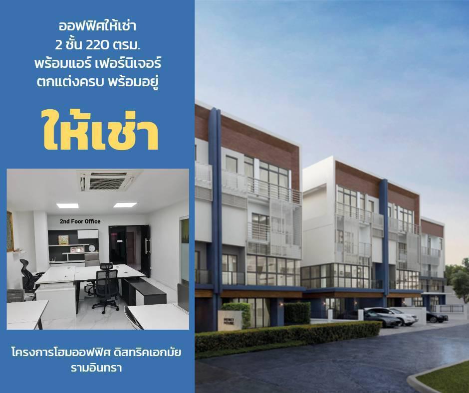 ให้เช่าออฟฟิศ เอกมัย-รามอินทรา ใกล้ขึ้นลงทางด่วน ออฟฟิศใหม่ 2 ชั้น 220 ตรม. พร้อมตกแต่ง แอร์ครบ และอุปกรณ์สำนักงาน