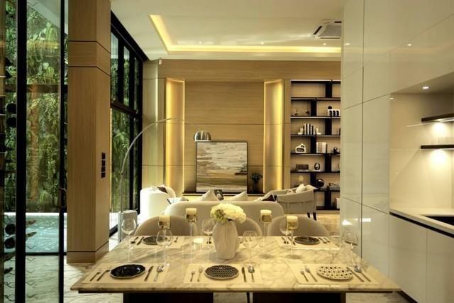 ห้องรับประทานอาหารพร้อมห้องครัวและบาร์แบบเปิดโล่ง