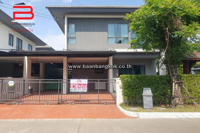 การตกแต่ง : มีเฟอร์นิเจอร์บิวท์อินทั้งหลัง แถมแอร์ 4 เครื่อง ชุดผ้าม่านอย่างดี ผนังติดวอลเปเปอร์ พื้นบ้านชั้นล่างและชั้นบนปูด้วยลามิเนต ครัวตกแต่งบิวท์อิน และมีสวนข้างบ้าน พร้อมทั้งซุ้มไวนั่งพักผ่อน ต่อเติมหลังคาที่จอดรถ แถมประตูหน้าบ้านแบบระบบอัตโนมัติ ด้านหลังบ้านต่อเติมหลังคา