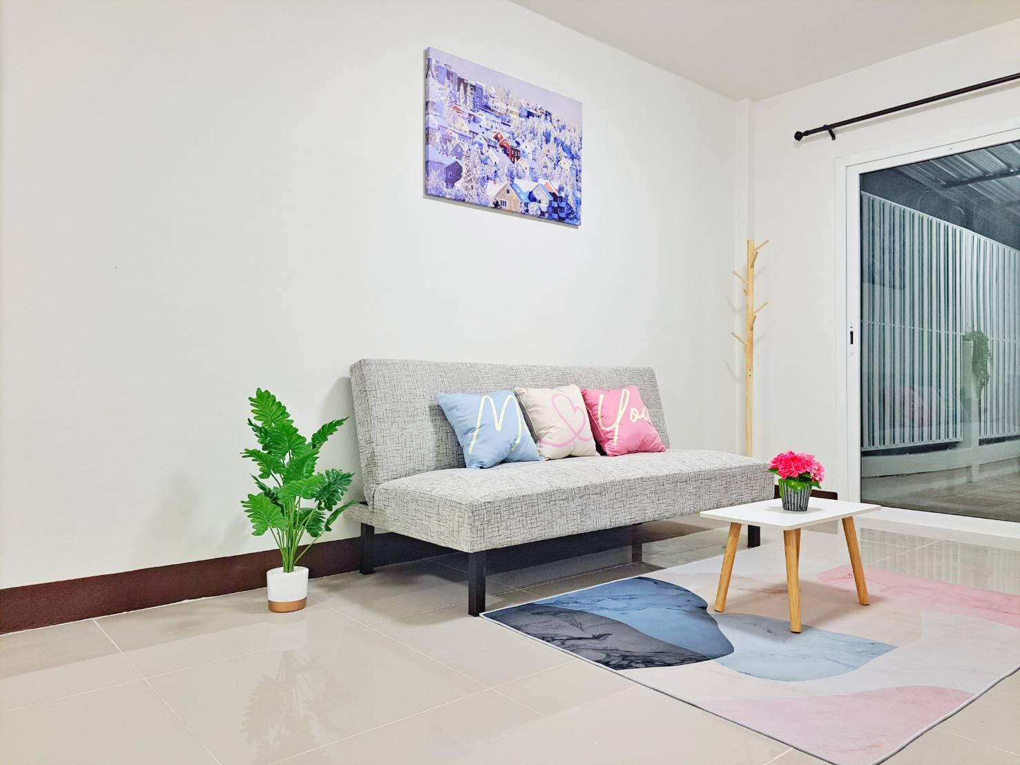 ทาวน์เฮ้าส์ชั้นเดียว 2 ห้องนอน 1 ห้องน้ำ พื้นที่ 26 ตารางวา จอดรถยนต์ในบ้านได้ 1 คันหน้าบ้านได้อีก 2 คัน ถนนหน้าบ้านกว้างมาก