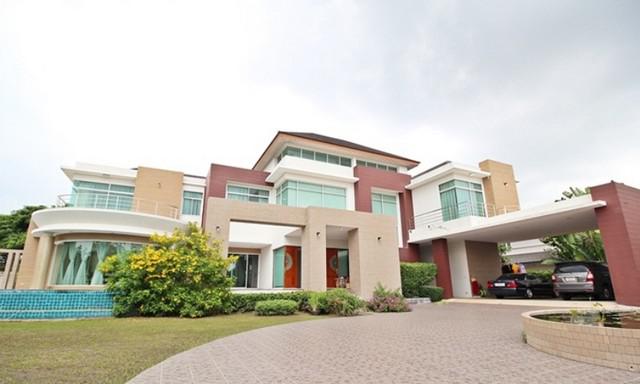 รหัส # PU213 ขายและให้เช่าบ้านเดี่ยว 2 ชั้น หลังใหญ่สไตล์โมเดิร์น 721 ตรว. หมู่บ้านปัญญา รามอินทรา มีสระว่ายน้ำส่วนตัว และสวนขนาดใหญ่ ใกล้สนามกอล์ฟปัญญา