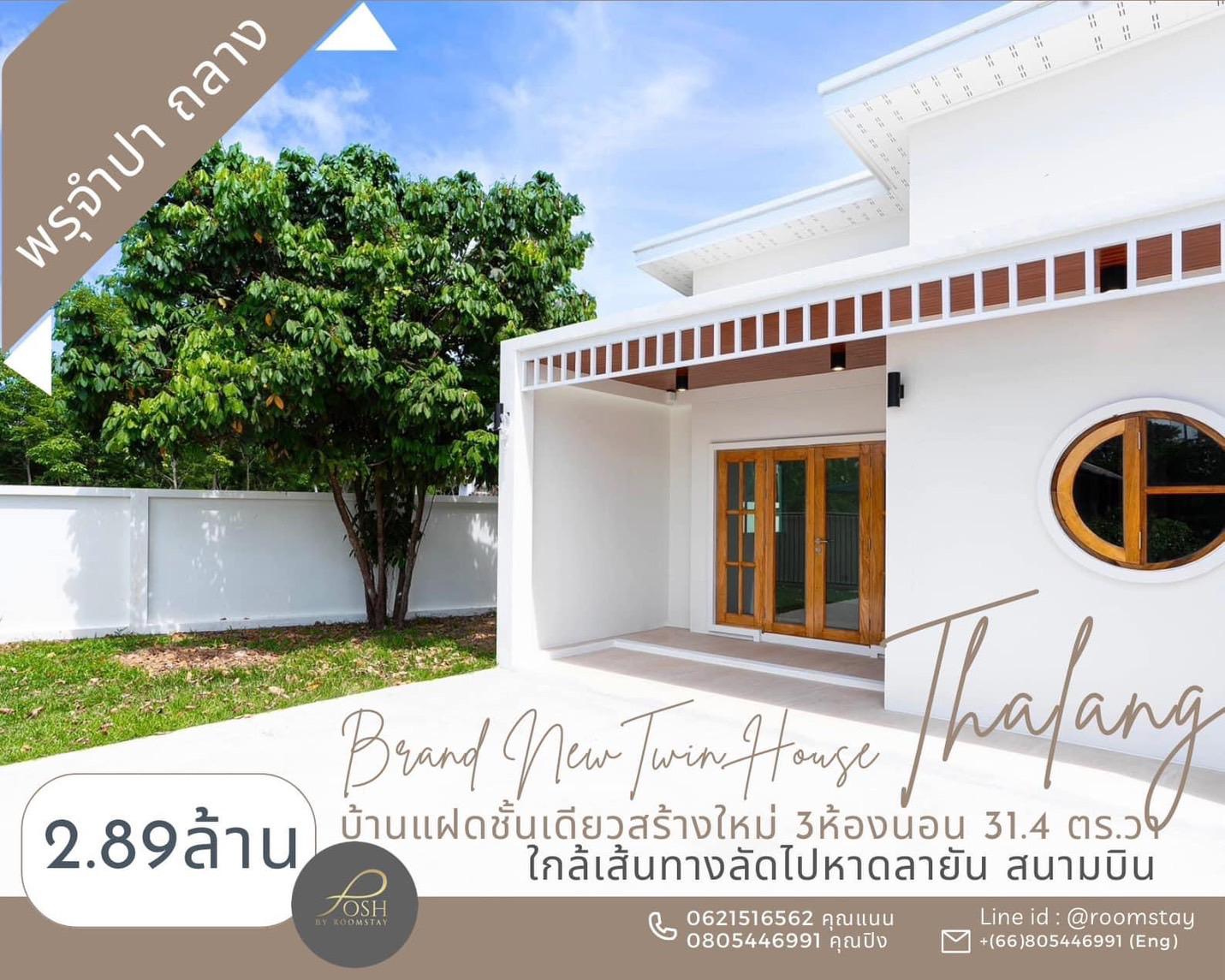 ขายบ้านแฝดชั้นเดียว สร้างใหม่ มือ1 มี2หลัง ใกล้เส้นทางลัดไปสนามบิน โครงการบ้านพรุจำปา ถลาง