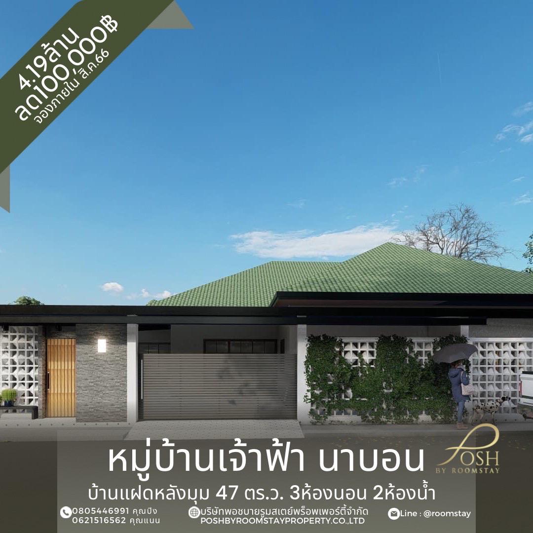 ขาย บ้านแฝดหลังมุม 3ห้องนอน 2ห้องน้ำ หมู่บ้านเจ้าฟ้านาบอน ฟรีโอน! ส่วนลด1แสน! หากจองภายในสิงหาคม2566