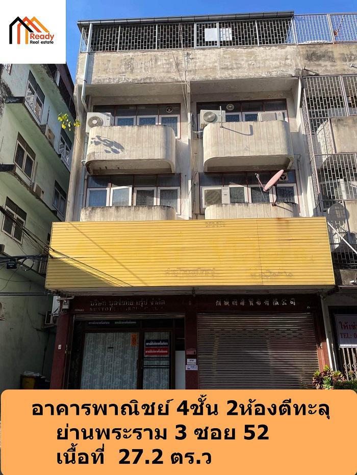 ขายตึก4 ชั้น เนื้อที่ 27.2 ตร.ว หลังมุม 2 ห้อง ตีทะลุกัน ย่านพระราม3 ซอย 52