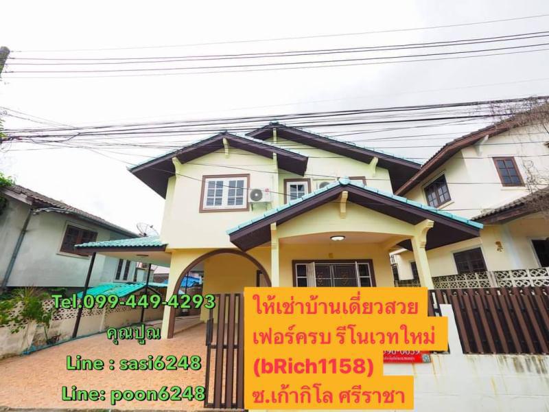 #ให้เช่าบ้านเดี่ยวสวยเฟอร์ครบ รีโนเวทใหม่ ซ.เก้ากิโล ศรีราชา หลังตลาดวรกิจ ทำเลดีห่าง 7-11 ตลาด 400 เมตร (bRich1158)