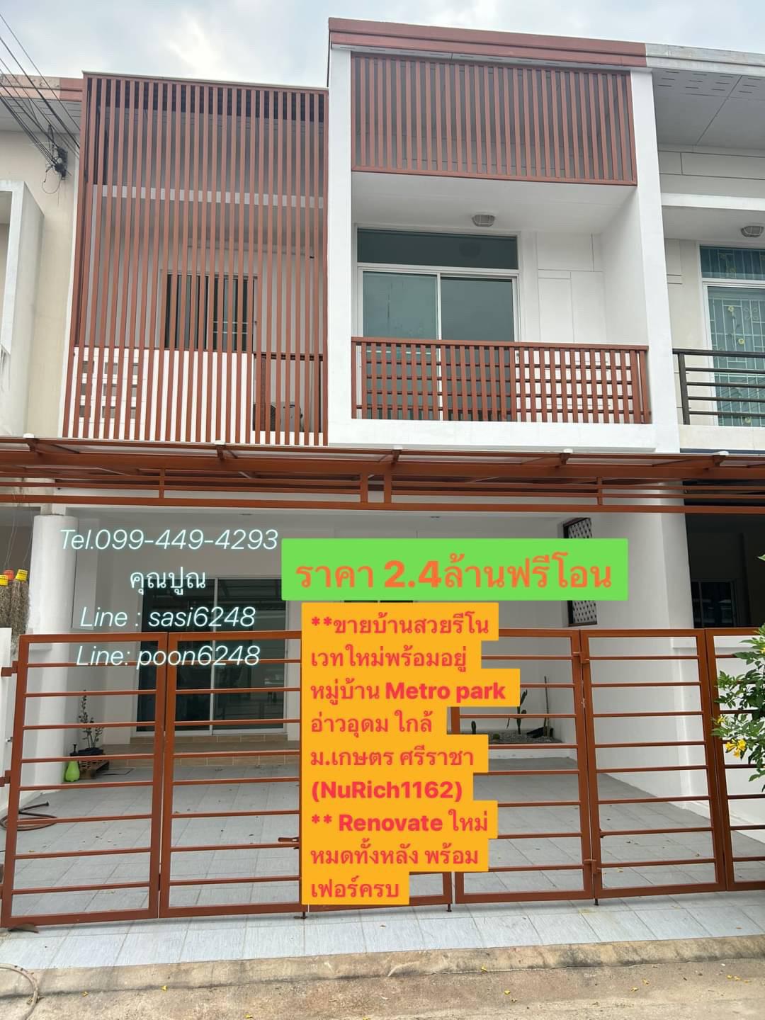 #ขายบ้านสวยรีโนเวทใหม่พร้อมอยู่ หมู่บ้าน Metro park อ่าวอุดม ใกล้ ม.เกษตร ศรีราชา (NuRich1162)