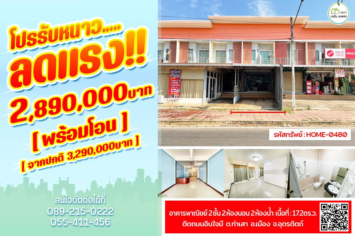 อาคารพาณิชย์ติดถนนอินใจมี ใกล้สี่แยกโรงเรียนวัดอรัญญิการาม ใกล้ถนนบายพาสใหม่อุตรดิตถ์