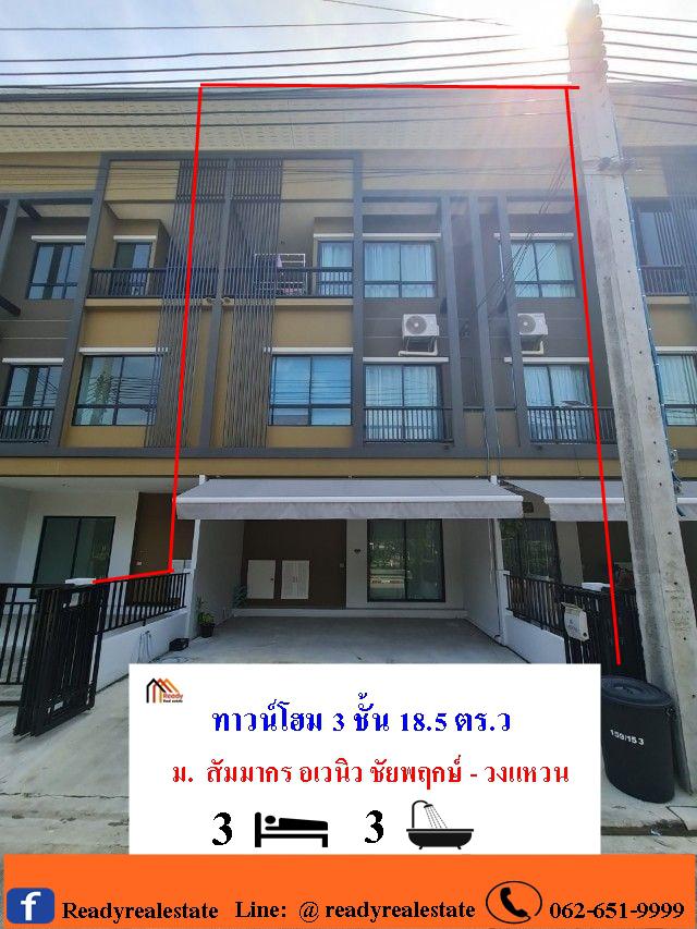 ขายทาวน์โฮม 3 ชั้น 18.5 ตร.ว ม. สัมมากร อเวนิว ชัยพฤกษ์ - วงแหวน ต่อเติม ทำเล ติดสวน
