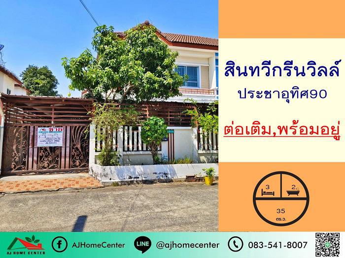 ขายบ้านแฝด35ตรว. ม.สินทวีกรีนวิลล์ ซ.ประชาอุทิศ90 สภาพดีพื้นที่ใช้สอยเยอะ ต่อรองได้