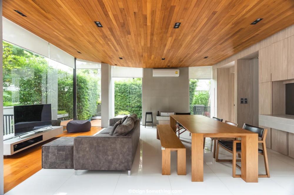 ชั้นที่หนึ่ง: ห้องนั่งเล่น ห้องครัว ครัวไทย ห้องน้ำ ห้องนอน/ห้องน้ำแม่บ้าน