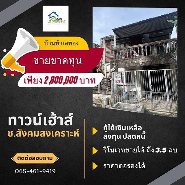ขายทาวน์เฮ้าส์ 2 ชั้น 25 ตรว. ซอย สังคมสงเคราะห์ 16 ลาดพร้าว 71 ใกล้ BTS โชคชัย 4 โทร 0654619419