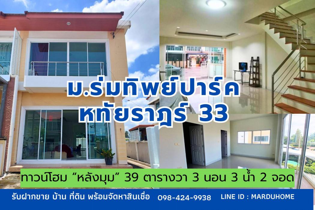 ลดราคาด่วน ขายเท่าทุน ทาวน์โฮม หลังมุม 39 ตารางวา หมู่บ้านร่มทิพย์ปาร์ค หทัยราษฎร์ 33 ถนนเมนกว้าง 16 เมตร บางชัน คลองสามวา