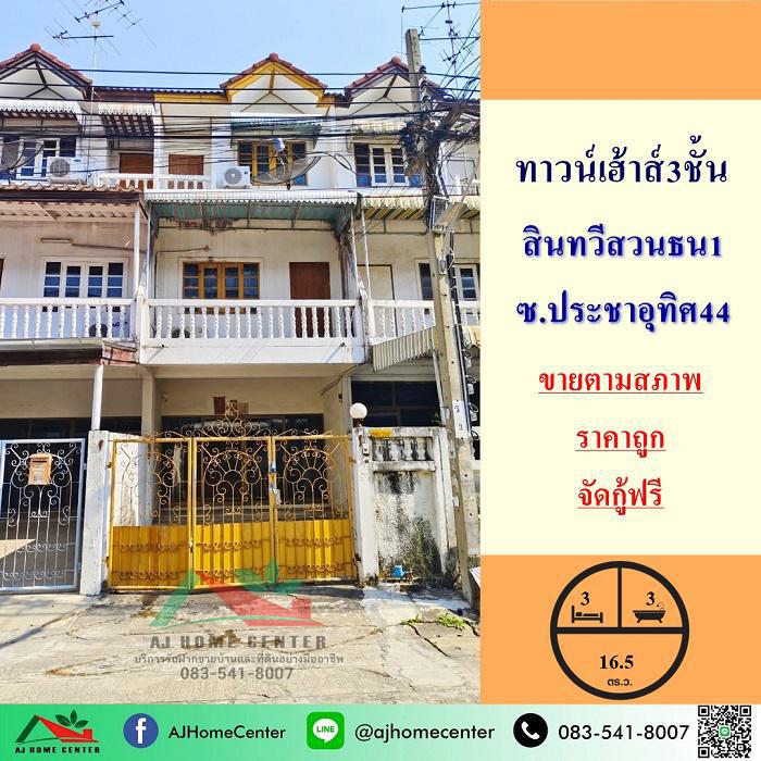 ขายถูก2.3ล้าน ทาวน์เฮ้าส์3ชั้น ม.สินทวีสวนธน1 ประชาอุทิศ44 จัดกู้ฟรี