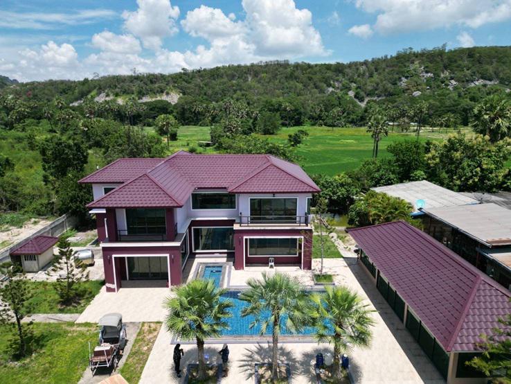 ลดราคา ขายด่วน บ้านเดี่ยว 2 ชั้น พร้อมสระว่ายน้ำ ติดถนนใหญ่ ถนนเพชรเกษม ชะอำ เพชรบุรี ด้านหลังได้วิวภูเขา