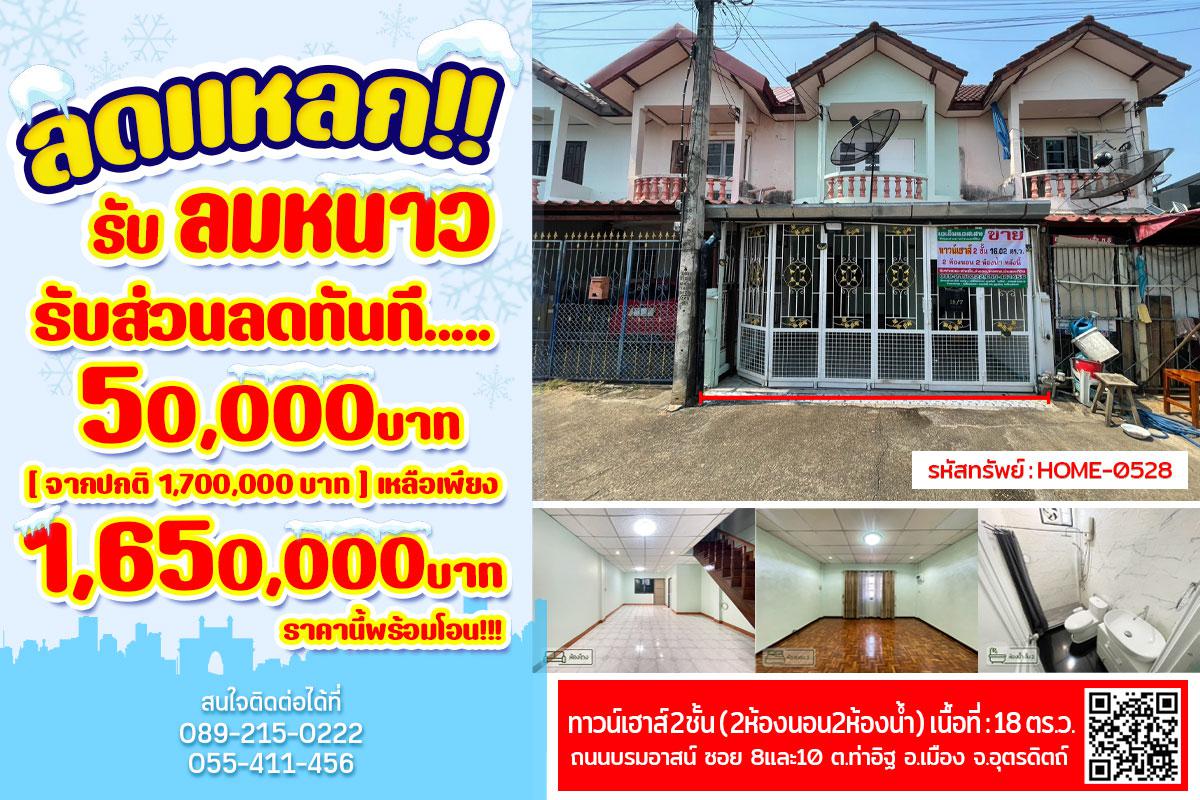 ทาวน์เฮาส์ ใกล้ห้างเเมคโค,ธนาคาร ธกส.,ธนาคารกรุงไทย กลางตัวเมืองอุตรดิตถ์ พร้อมเข้าอยู่