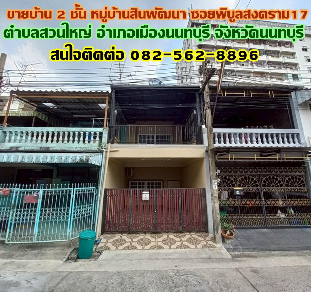 ขายบ้าน 2 ชั้น หมู่บ้านสินพัฒนา ซอยพิบูลสงคราม17 ใกล้ท่าน้ำนนท์ ตำบลสวนใหญ่ อำเภอเมืองนนทบุรี จังหวัดนนทบุรี