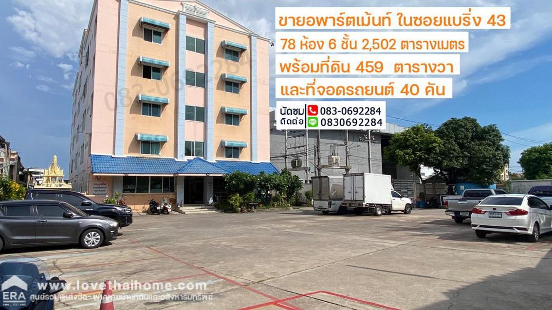 - อพาร์ตเม้นท์ 6 ชั้น 459 ตรว. อยู่ซอยแบริ่ง43 เข้าซอยเพียง 100 เมตร