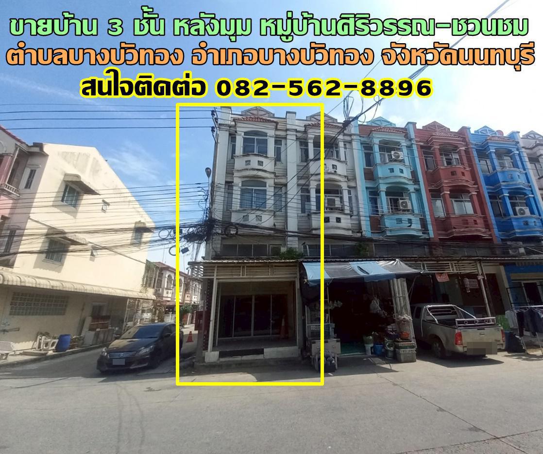 ขายบ้าน 3 ชั้น หลังมุม หมู่บ้านศิริวรรณ-ชวนชม ถนนบางกรวย-ไทรน้อย