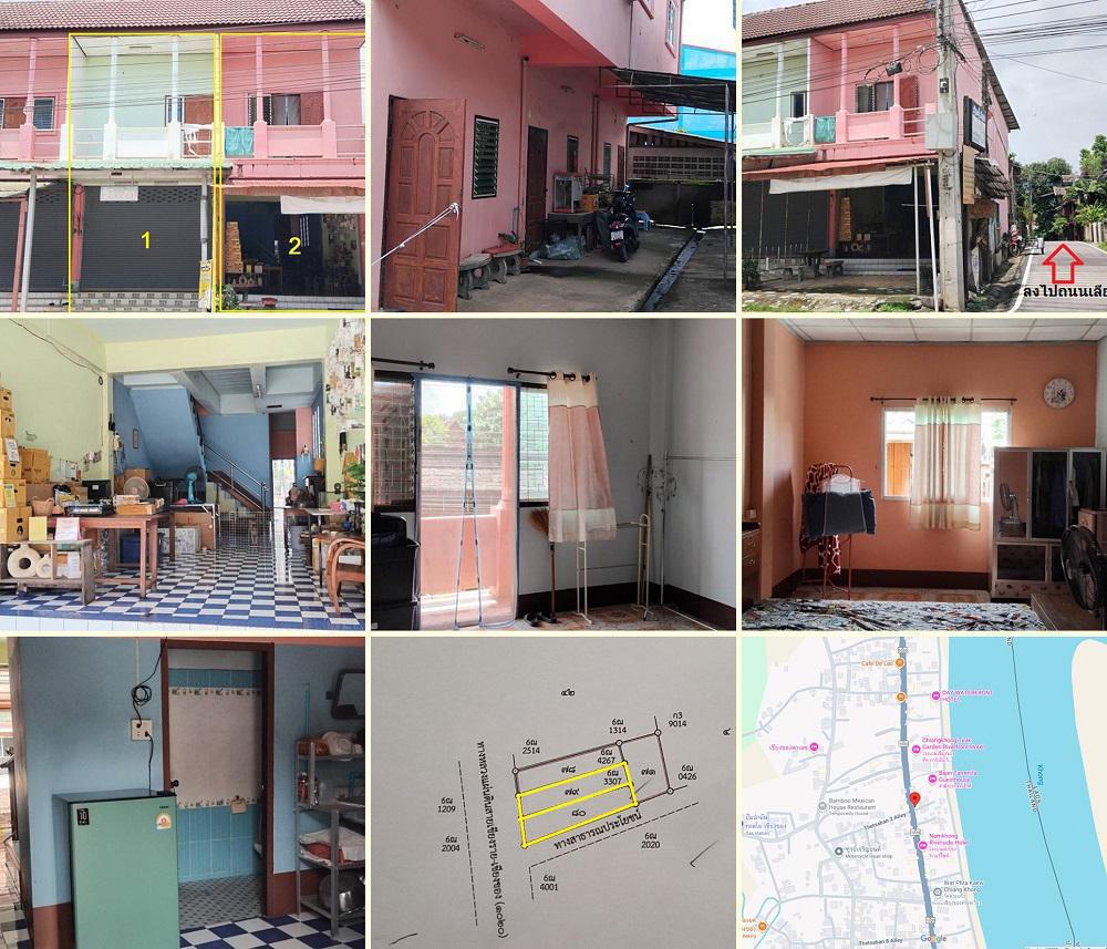 *ห้องแถว (ตามภาพ ห้องกลาง สีเขียว) ตึก 2 ชั้นติดถนน 2 ห้องนอน 1 ห้องน้ำ