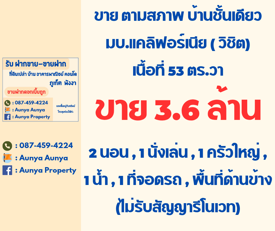 ประกาศที่ท่านเห็นอยู่นี้เป็นประกาศที่ผู้ต้องการซื้อขาย (อาจเป็นเจ้าของหรือนายหน้า) ได้นำเนื้อหาและรูปภาพมาลงไว้ด้วยตนเอง กรุณาตรวจสอบข้อมูลผู้ซื้อขาย และตรวจสอบอสังหาริมทรัพย์ก่อนทำการซื้อขายจริง ข้อมูล/รูปภาพผู้ประกาศจะรับผิดชอบทั้งหมด
