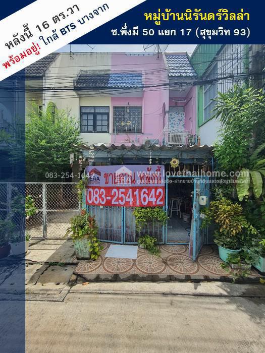 - ทาวน์เฮ้าส์ 2 ชั้น 16 ตรว. หมู่บ้านนิรันดร์วิลล่า ซ.พึ่งมี 50 แยก 17 ถ.สุขุมวิท 93