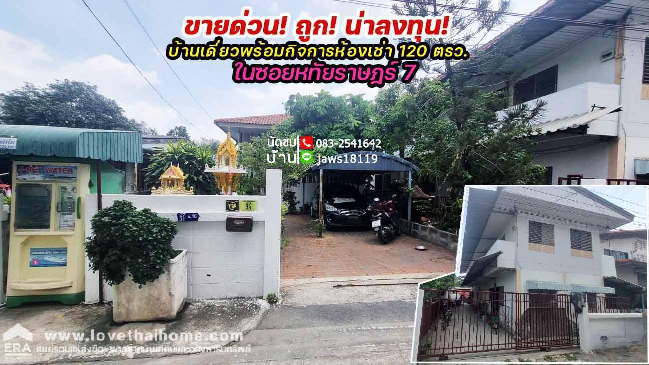 - บ้านเดี่ยว 2 ชั้นพร้อมกิจการห้องเช่า 120 ตรว. ถ.หทัยราษฎร์ 7